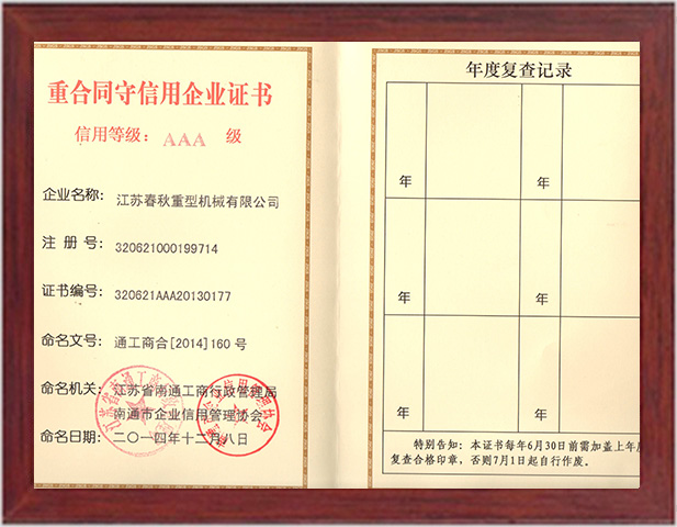 AAA誠(chéng)信證書