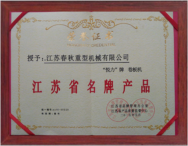 江蘇省名牌產品證書